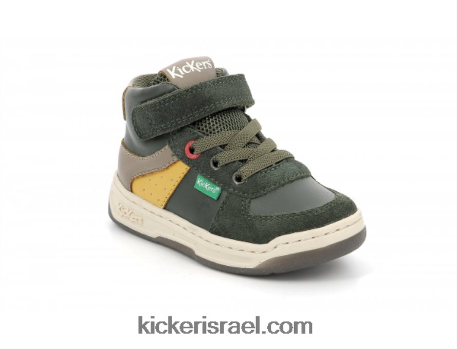 דגם kickalien הוא זוג נעלי ספורט גבוהות לילד עשויות חלק עליון סינטטי קאקי, צהוב ובז' ותוחם 100% טקסטיל. נעלי ספורט גבוהות אלו מבטיחות לך נוחות וחוסן הודות למדרס 100% טקסטיל והסוליה החיצונית הסינתטית שלה. דגם ה-Kickalien מתאים לכפות הרגליים של כל הבנים בזכות האלסטיות והסקוטש שלו. אל תחכו יותר כדי לפנק את עצמכם באתר הרשמי של kickers, ההחזרות הן בחינם!